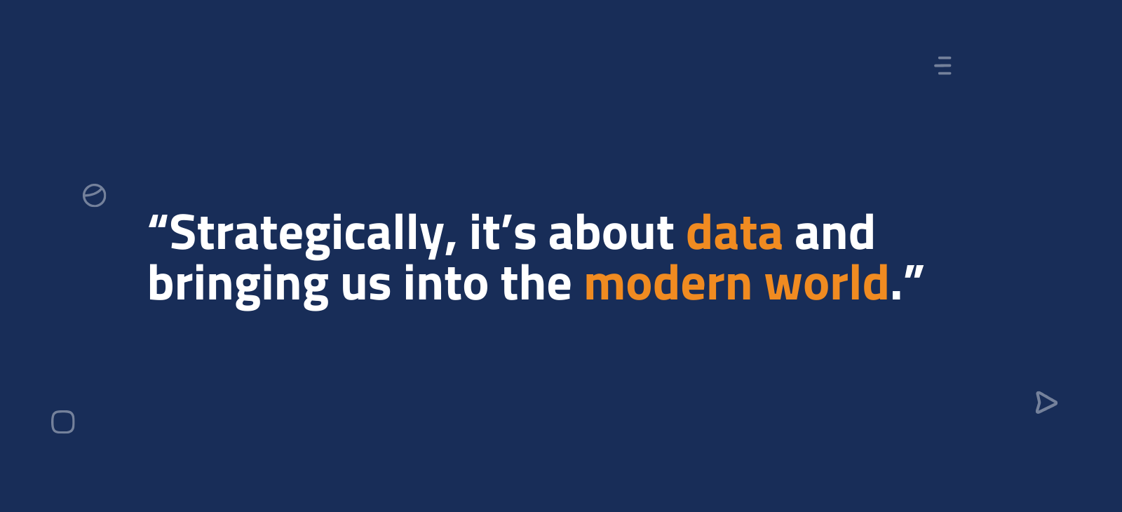 “Strategically, it’s about data,” Emmett says. “And bringing us into the modern world.”
