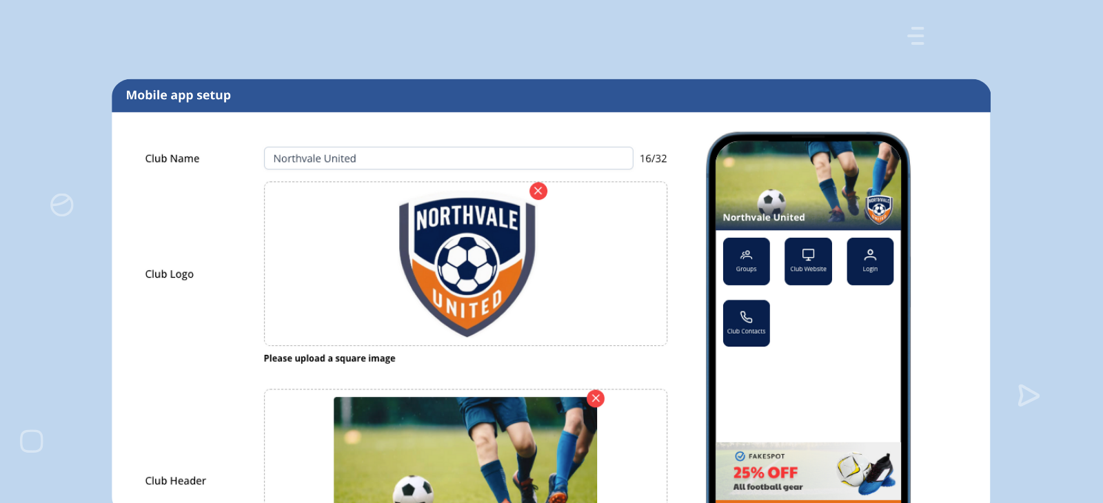 By adding their logo, selecting club colours, and uploading background images, each organisation can create a recognisable experience that feels familiar to its members.